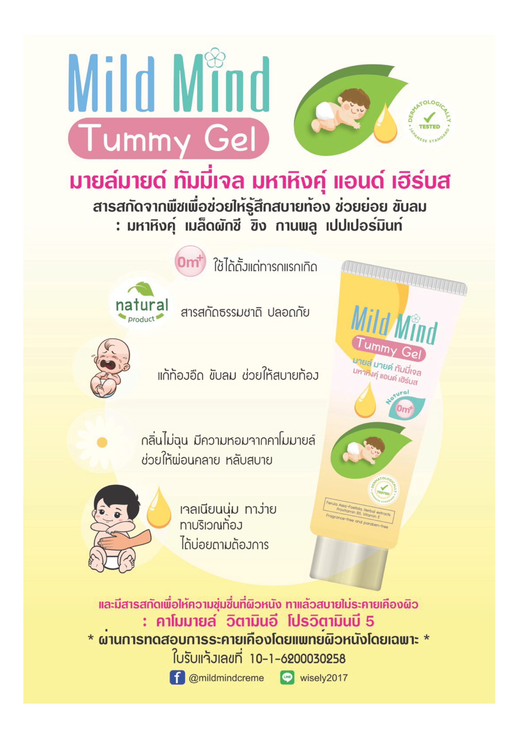 -ชุ่มชื่นที่ผิวหนังบริเวณที่ทา ไม่ระคายเคืองเพราะมีสารสกัดที่ช่วยบำรุงผิวและให้ความชุ่มชื่น ลดการอักเสบ